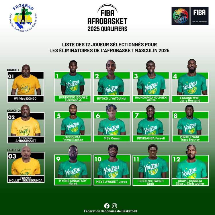 Après 10 jours de préparation intensive, le trio composé de Wilfried Dongo, Ambroise Ambourouet et Fabrice Nollet Moussonda a fait son choix. Les 12 joueurs sélectionnés sont un mélange équilibré d’expérience et de jeunesse, réparti équitablement entre joueurs locaux et expatriés (6 de chaque côté). Parmi eux, on retrouve des noms bien connus comme Chris Silva, qui apportera son talent et son expérience internationale.