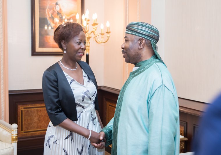 Ali Bongo Ondimba, s’est entretenu ce 3 juin au palais présidentiel avec le Secrétaire Général de l’Organisation Internationale de la Francophonie (OIF), Mme Louise Mushikiwabo.