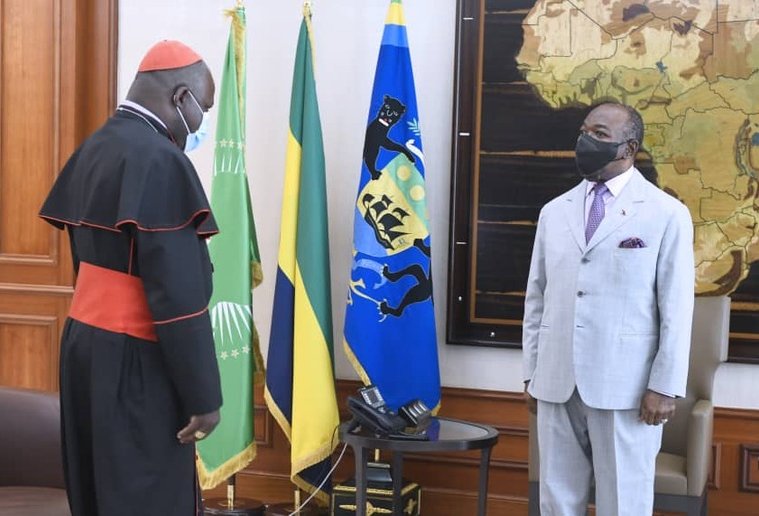 Il a félicité le Président de la République d’avoir maintenu un dialogue permanent entre les différentes religions dans notre pays qui concourt à un œcuménisme, socle de stabilité entre les populations. Membre de la Curie romaine, Son Eminence Dieudonné le Cardinal NZAPALAINGA a suivi ses études au Grand Séminaire International Daniel BROTTIER de Libreville. Il a été consacré évêque en 2013 et créé Cardinal le 19 novembre 2016 par le Pape François.