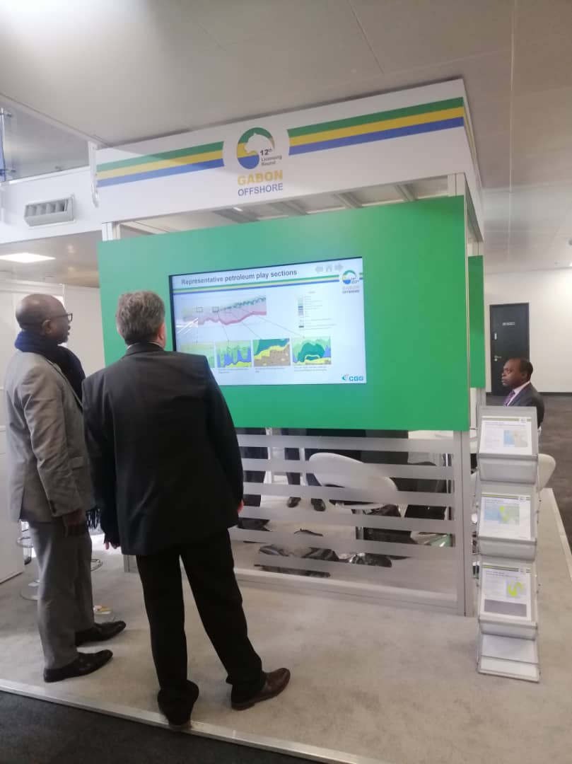 La visite du stand « Gabon » animé conjointement par les techniciens du ministère, les partenaires techniques CGG, TGS, anciennement SPECTRUM qui a accompagné le ministère dans la mise en œuvre du 12ème appel d’offres, a constitué la dernière étape de cette deuxième journée pour la délégation gabonaise.