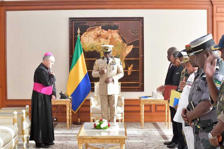 Brice Clotaire Oligui Nguema échange avec le nonce apostolique et une délégation d’évêques