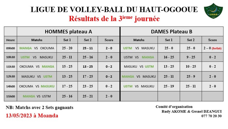 Comme de coutume, la ligue de volleyball du Haut-Ogooué a organisé le samedi 13 mai dernier son championnat. Celui-ci sous forme de regroupement, a enregistré 11 rencontres dont 5 matchs chez les dames.