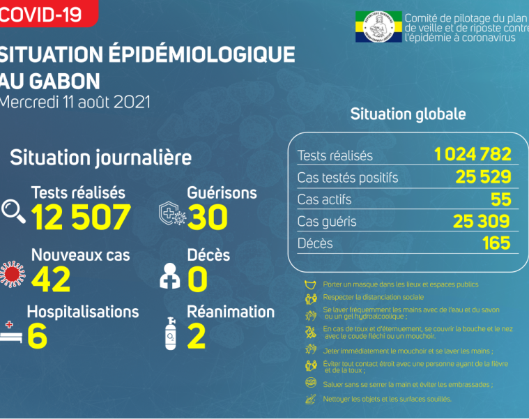 Gabon Matin vous livre le point journalier du Comité de pilotage du plan de veille et de riposte contre l’épidémie à Coronavirus au Gabon du 11 août 2021.