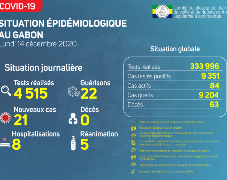Coronavirus au Gabon : point journalier du 14 décembre 2020