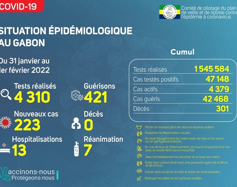 Coronavirus au Gabon : point journalier du 1er février 2022