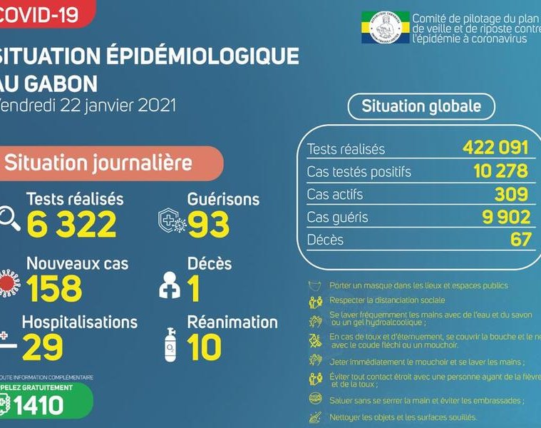 Gabon Matin vous livre le point journalier du Comité de pilotage du plan de veille et de riposte contre l’épidémie à Coronavirus au Gabon du 22 janvier 2021.