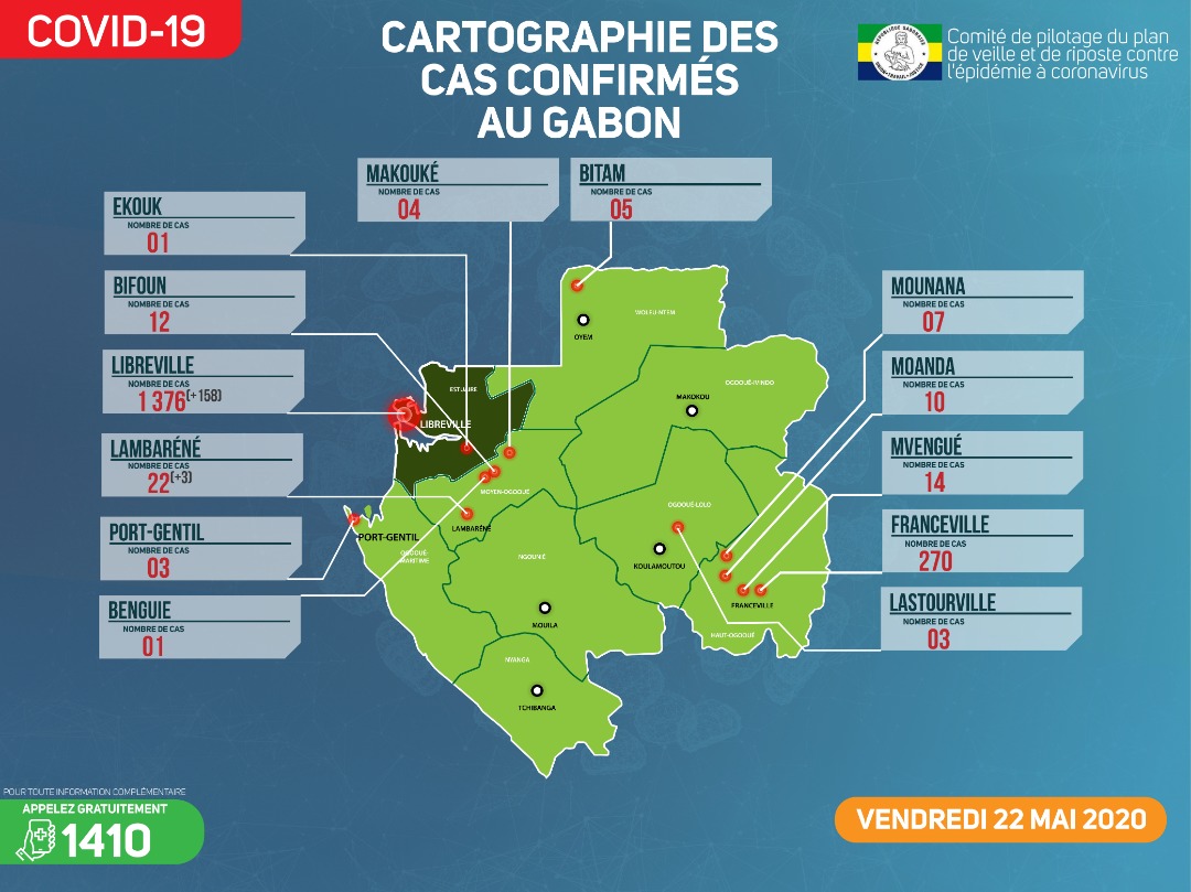 Gabon Matin vous livre le point journalier du Comité de pilotage du plan de veille et de riposte contre l’épidémie à Coronavirus au Gabon du 22 mai 2020.