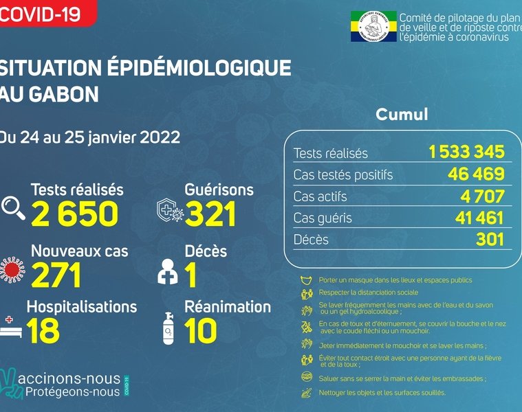 Coronavirus au Gabon : point journalier du 25 janvier 2022