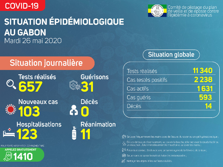 Gabon Matin vous livre le point journalier du Comité de pilotage du plan de veille et de riposte contre l’épidémie à Coronavirus au Gabon du 26 mai 2020.