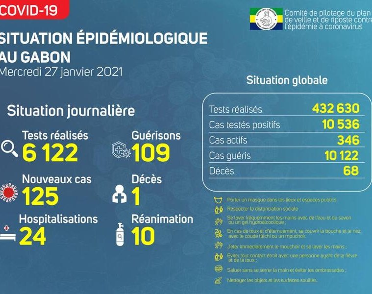 Gabon Matin vous livre le point journalier du Comité de pilotage du plan de veille et de riposte contre l’épidémie à Coronavirus au Gabon du 27 janvier 2021.