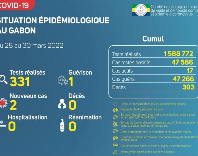 Coronavirus au Gabon : point journalier du 30 mars 2022