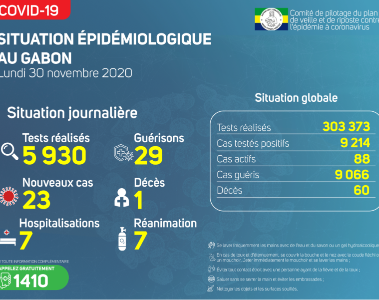 Coronavirus au Gabon : point journalier du 30 novembre 2020