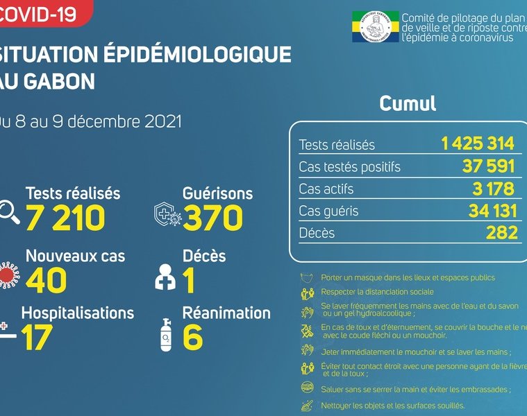 Gabon Matin vous livre le point journalier du Comité de pilotage du plan de veille et de riposte contre l’épidémie à Coronavirus au Gabon du 9 décembre 2021.