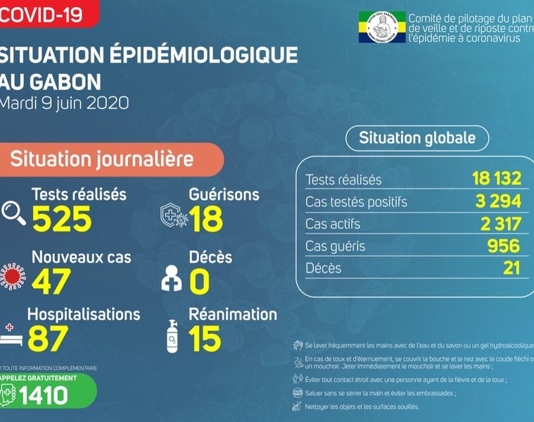 Gabon Matin vous livre le point journalier du Comité de pilotage du plan de veille et de riposte contre l’épidémie à Coronavirus au Gabon du 9 juin 2020.