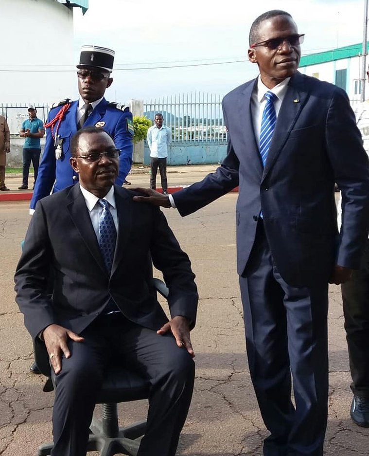 Le ministre avec le nouveau et l’ancien gouverneur du Woleu-Ntem