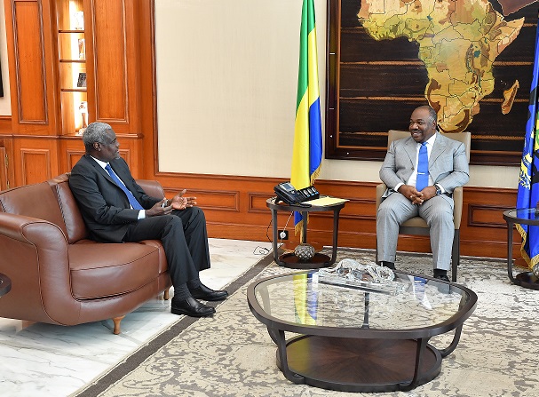 Ali Bongo s’est entretenu ce lundi avec le président de la Commission de l’Union africaine (UA), M. Moussa Faki Mahamat, accompagné de son conseiller stratégique principal, M. Mohammed Hacen Ould Lebatt et de son porte-parole, Mme Ebba Kalondo.