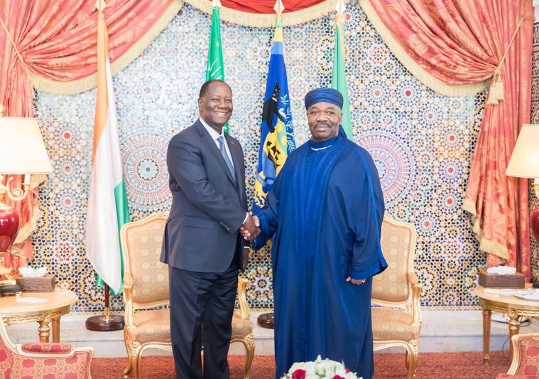 Ali Bongo Ondimba a reçu ce mercredi au Palais présidentiel son homologue, le Président de la République de Côte d’Ivoire Son Excellence Alassane Dramane Ouattara dans le cadre d’une visite de travail et d’amitié.