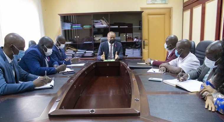 Le ministre de la Santé, Guy Patrick Obiang Ndong a eu une séance de travail, le lundi 18 octobre 2021, avec les Responsables des Agences de transport terrestre « Major transport » et « Transporteur voyages » en présence des responsables de la Brigade mixte du Copil-Coronavirus, du Directeur général des Transports terrestres (DGTT), du Directeur général de la Sécurité routière ainsi que des différents leaders syndicaux du secteur des transports (SYLTTEG, FEGASTA et SAMTAC).