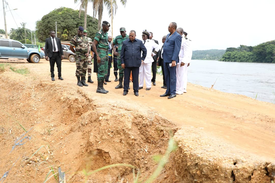 C’est accompagné du ministre d’Etat, ministre de l’Intérieur, Edgar Anicet Mboumbou Miyakou, des ministres de la Défense nationale, Mme Rose Christiane Ossouka Raponda, des Travaux publics, Hugues Mbadinga Madiya, des Relations avec les institutions et de la Fonction publique, Denise Mekam’ne et Madeleine Berre toutes deux originaires de la province, que le chef du gouvernement a fait le tour des sites inondés à Ndjolé et Lambaréné.